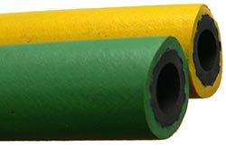 Twinline Green & Yellow Welding Gas Hose is reinforced with textile plies to provide a working pressure of 20 Bar. Often used as Deadmans Hose for Shotblast Service as a pneumatic remote control, Twinline Welding Gas Hose is suitable for air, gas and moderate chemicals.