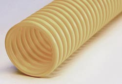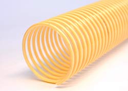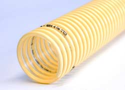 Microbe Resistant Medium Duty Ether Polyurethane Ducting with excellent abrasion resistance for transferring wood pellets; this ducting is perfectly suited as a medium-weight and reasonably flexible solution to biomass boiler systems for transferring to and from wood pellet delivery trucks, wood pellet stores & boilers. Medium weight compared with some of the other hoses we suggest, Eolo PUP will not last as long as the heavier ductings in an abrasive environment, but provides a cost-effective and reasonably flexible solution to wood pellet abrasion at higher vacuum and abrasive levels than the lighter duty versions.